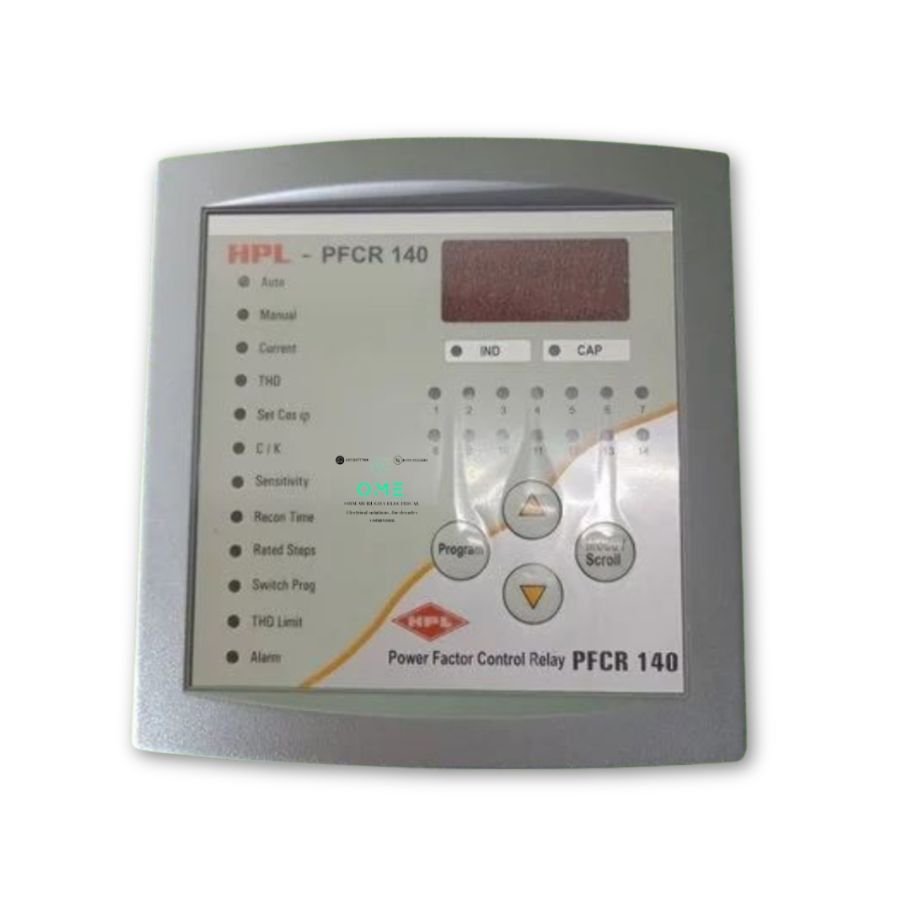 The HPL 14 Stage 415VAC Power Factor Controller Relay (Model: PFCR140-415-50) is a microprocessor-based controller designed to automatically manage capacitor banks and maintain optimal power factor levels in industrial and commercial electrical systems. Built for reliability and efficiency, it helps reduce energy losses, improve system stability, and optimize reactive power management.