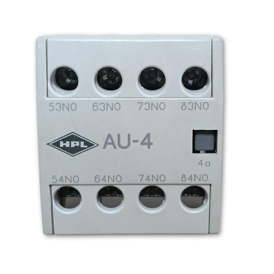 The HPL 4 NO Add On Block (AU-4) is a reliable modular auxiliary contact block designed to expand the control capabilities of HPL power contactors. It provides four Normally Open (NO) contacts, making it ideal for additional signaling, interlocking, or control circuits without changing the main contactor. Easy to mount on top, compact in design, and built for industrial environments, this add-on block ensures flexibility and efficient panel wiring with trusted HPL quality from HPL Electric & Power Ltd.