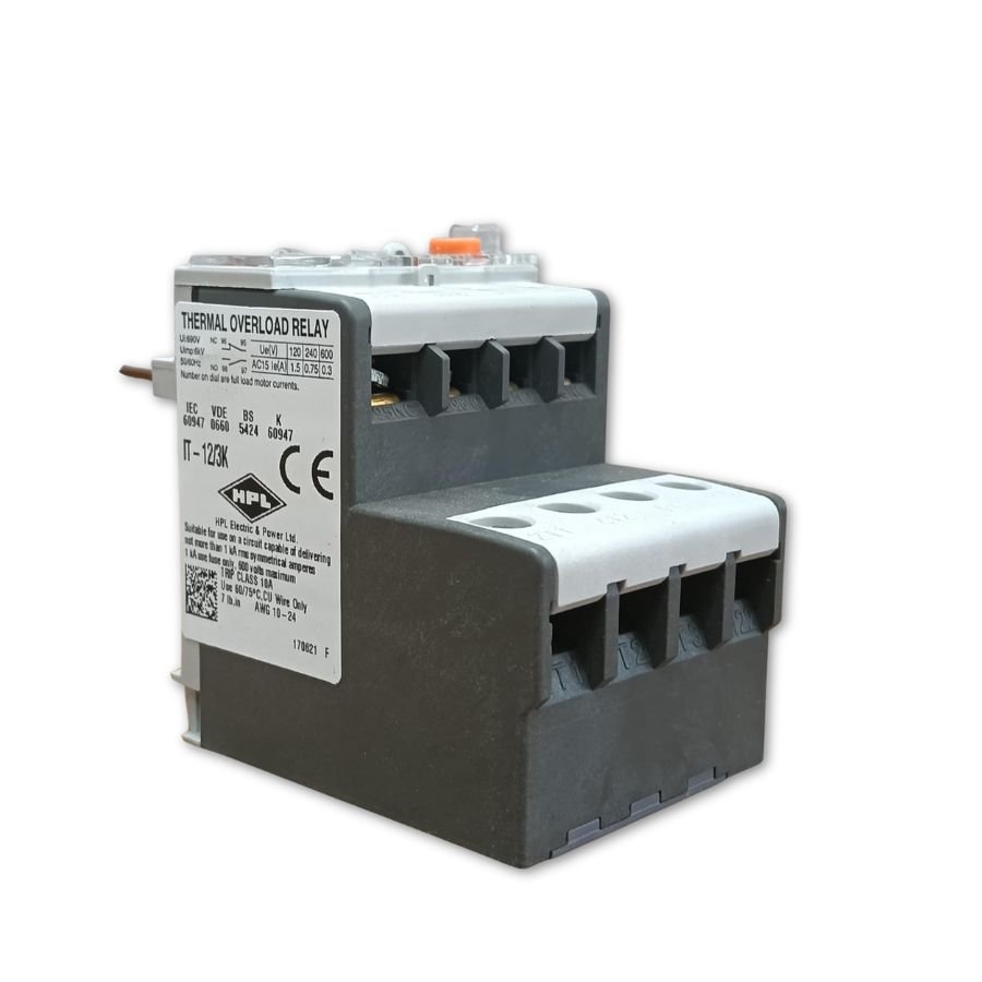 The HPL IT32 Thermal Overload Relay with a current range of 1–1.6 Amps is a reliable motor protection device designed to safeguard motors and electrical circuits against overloads, phase unbalance, and single phasing. Built with a differential bimetallic mechanism, it ensures accurate tripping and consistent performance across varying ambient temperatures. Compact, durable, and easy to mount, this relay is well-suited for industrial control panels, automation systems, agriculture equipment, and HVAC applications where dependable motor protection is essential.